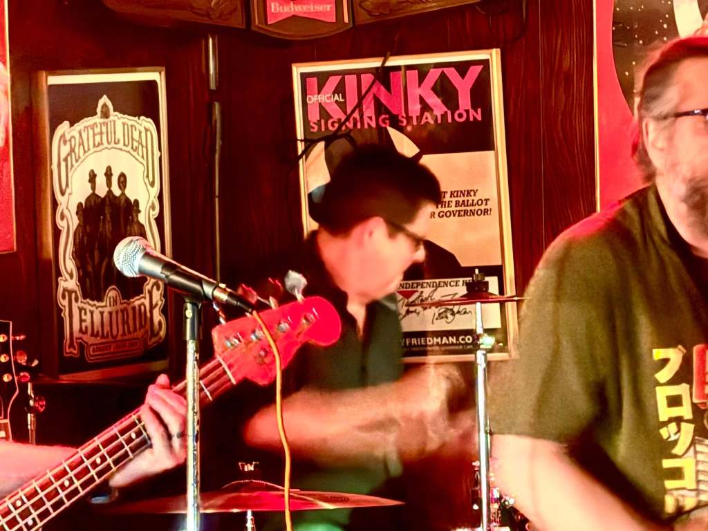 What can I say about my pals, The Sultans? We shared a warehouse back in the late 80’s and I sat in with them quite a bit at Skippy’s as well as The White Elephant Saloon when their drummer was out of town. They were THE HOUSE BAND in the 80’s and 90’s at The Mistake! With a tight repertoire of Stones, Beatles, Doors, Mott the Hoople, and some new wave, we tore through three full sets of music without any rehearsal beforehand. Yeah, we were having way too much fun, some flubs were made here and there, I probably played way too loud and Moonish which is what happens when I get excited playing a band that I love. For me, it was glorious to get back behind the Yamahas with these gentlemen. What a gas! Video and photos below.